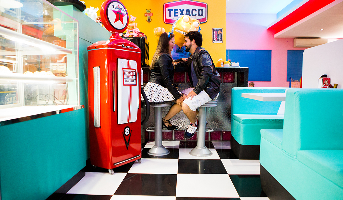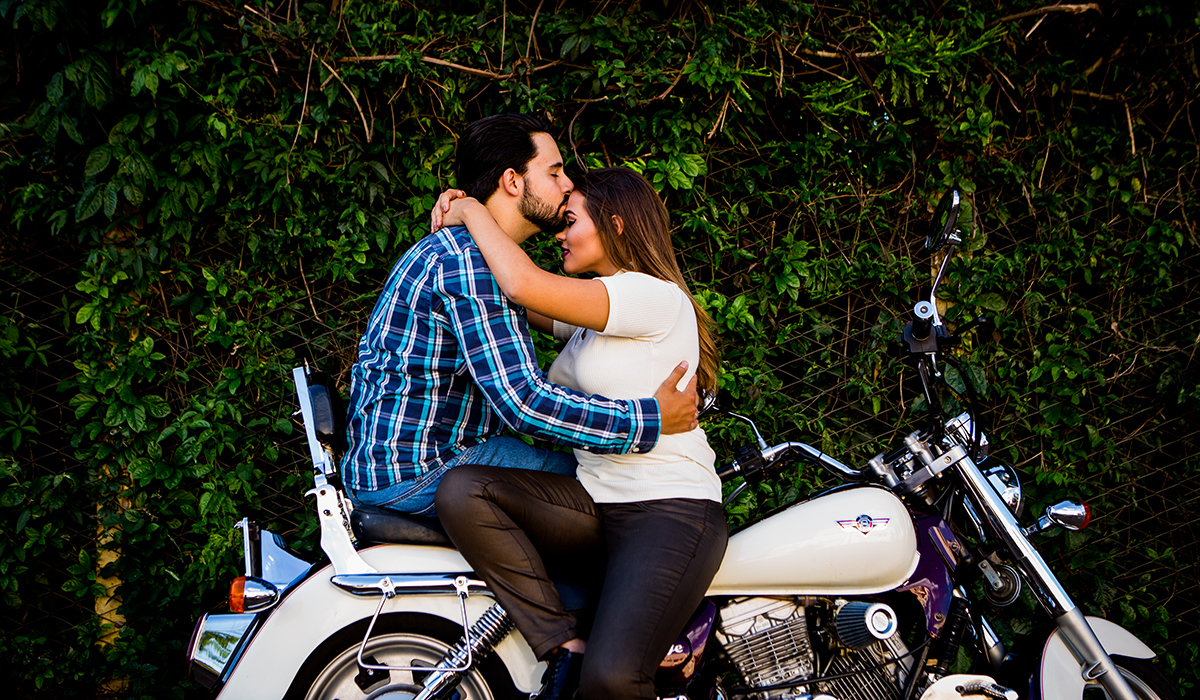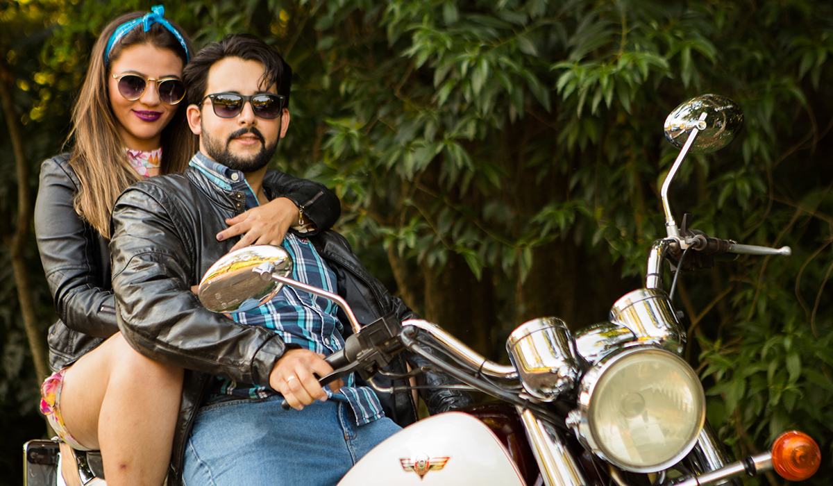 Pensa num ensaio lindo com o tema dos anos 80 e a moto do noivo linda. No dia desse ensaio saiu um sol maravilhoso e depois finalizamos numa Hamburgueria Retrô.